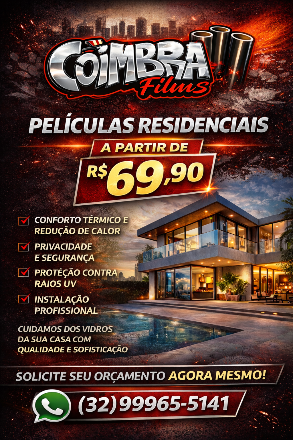 A Coimbra Films oferece soluções modernas em películas residenciais para vidros, desenvolvidas para proporcionar mais conforto térmico, privacidade e proteção para o seu lar.
