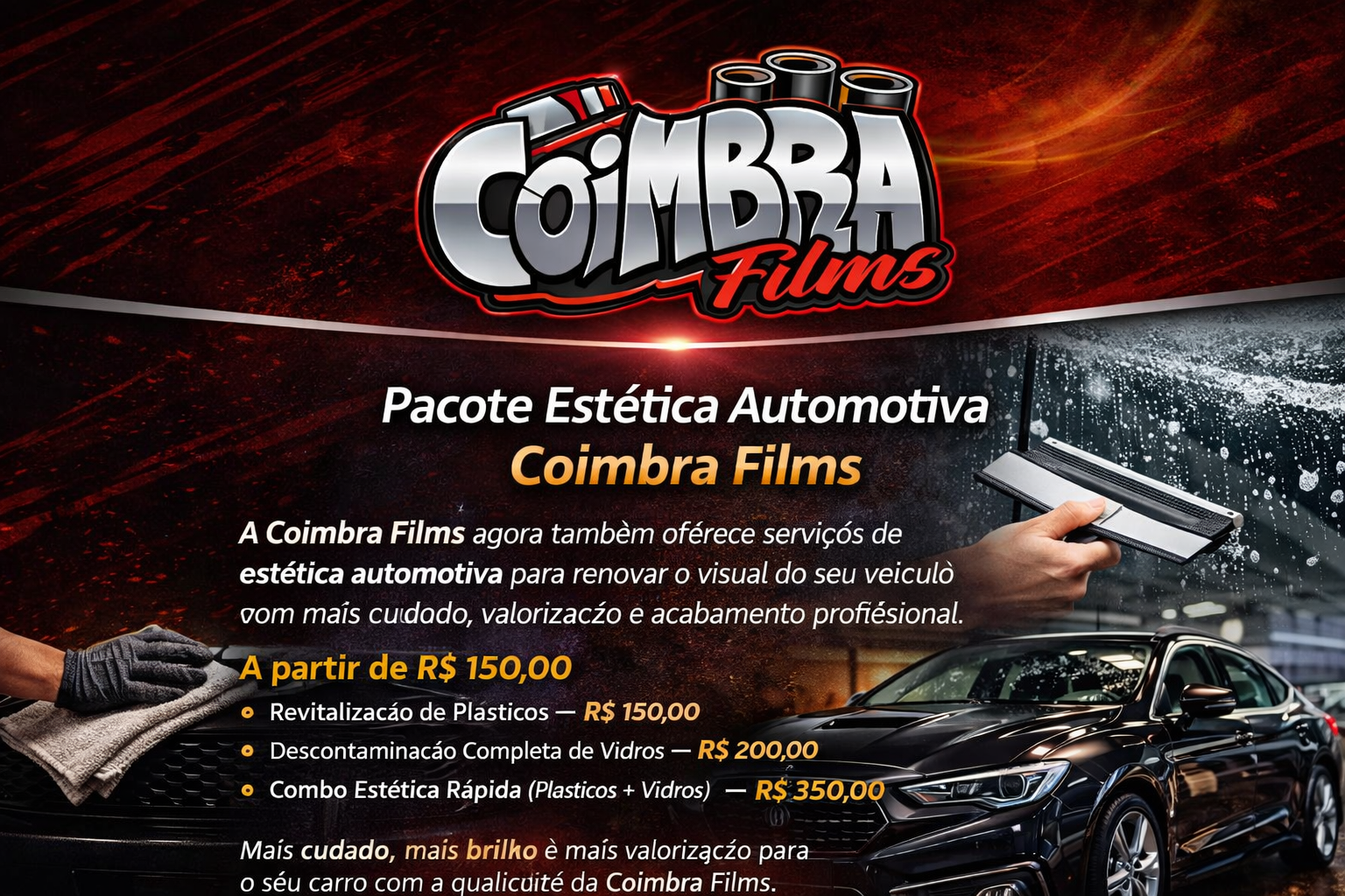 A Coimbra Films agora também oferece estética automotiva para renovar o visual do seu veículo com acabamento profissional e muito mais qualidade.